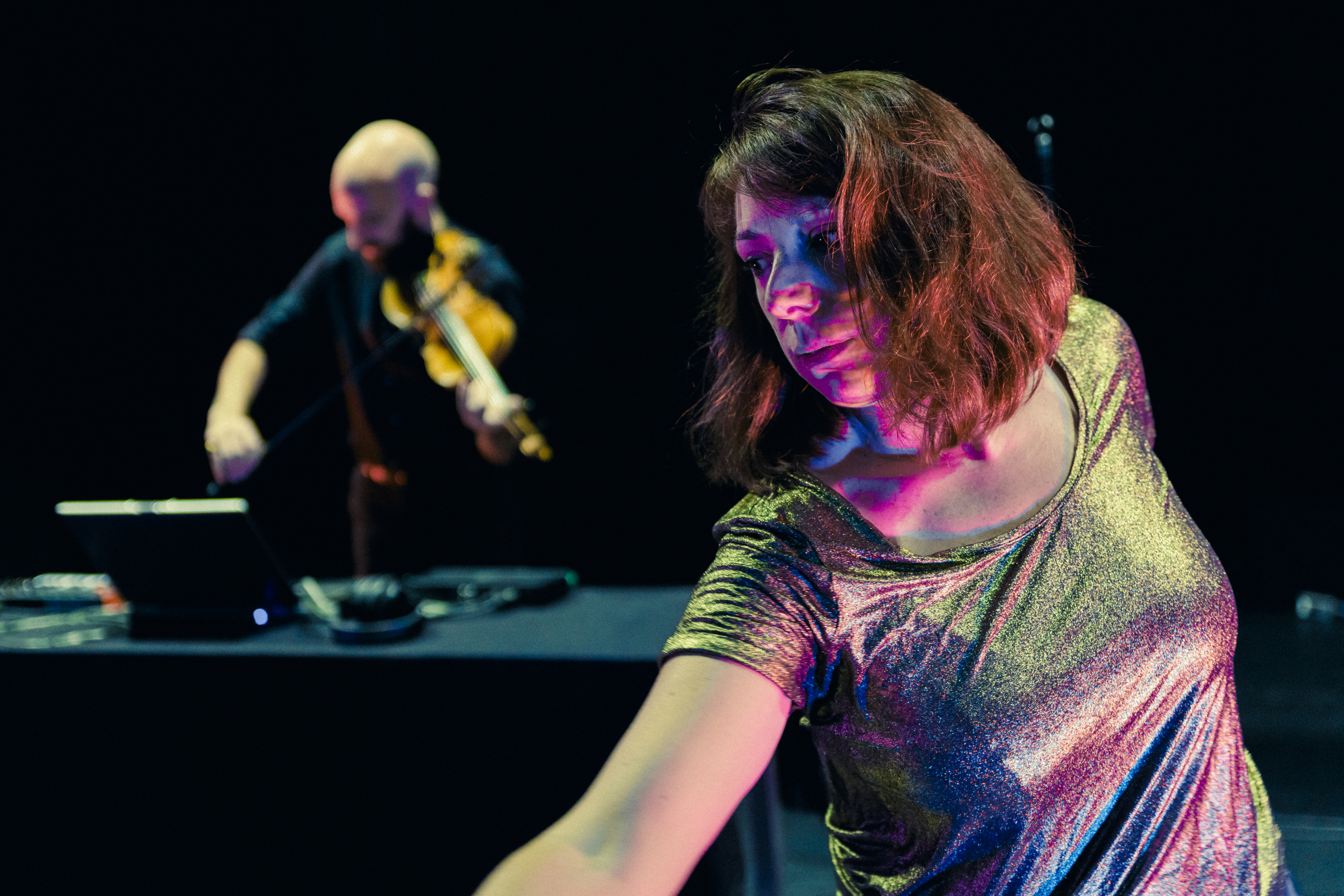 Sur scène, une comédienne raconte Cassandre, entre narration, humour et vertige. Un micro à la main, elle rejoue la lutte d’une femme. Autour d’elle, la musique électro bat comme un cœur, un cri intérieur. Dans cette cité de métal et de néons, les mythes anciens se fondent dans le bruit du présent. Parce qu’on a fait taire Cassandre, le spectacle sera bruyant.